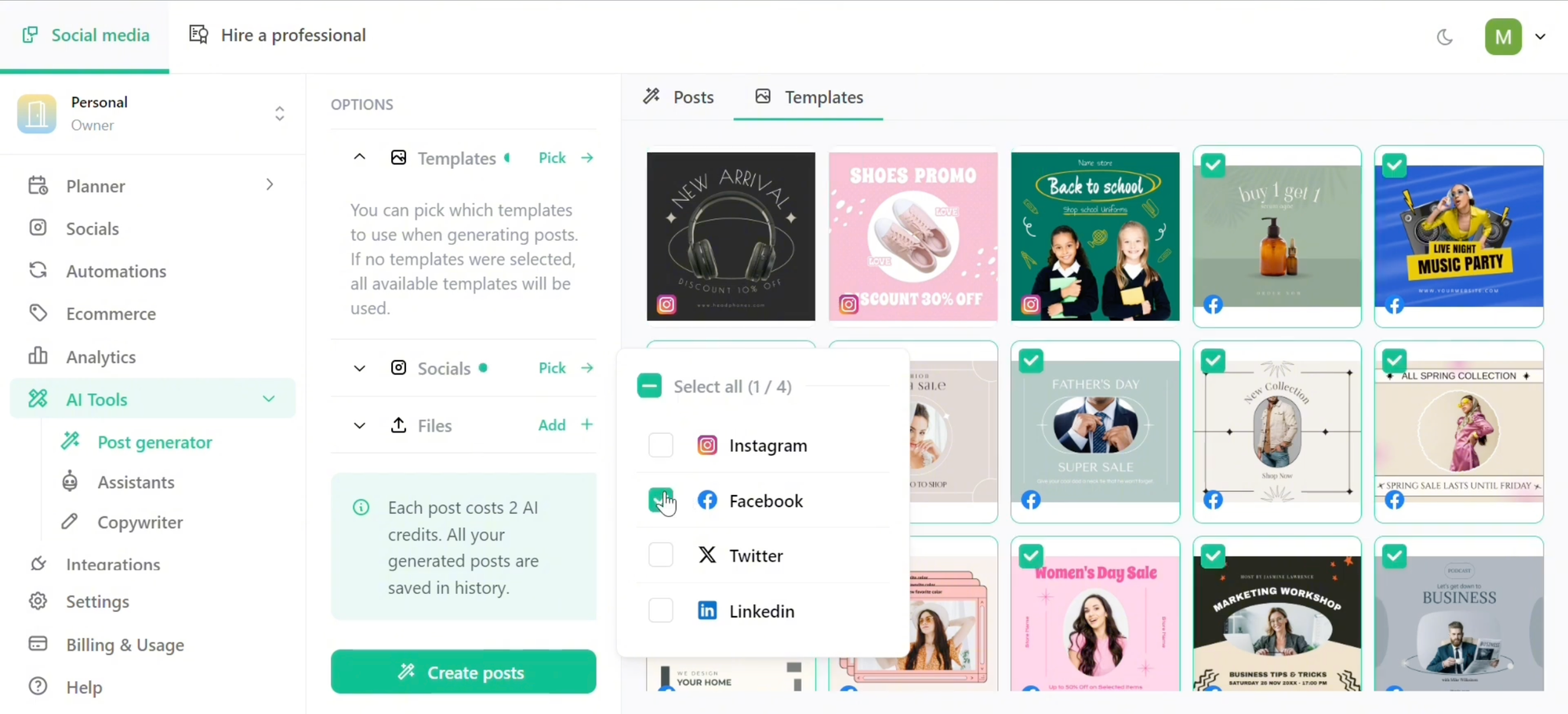 Content Planner: Basic scheduler included in the Pro plan for organizing and publishing posts.